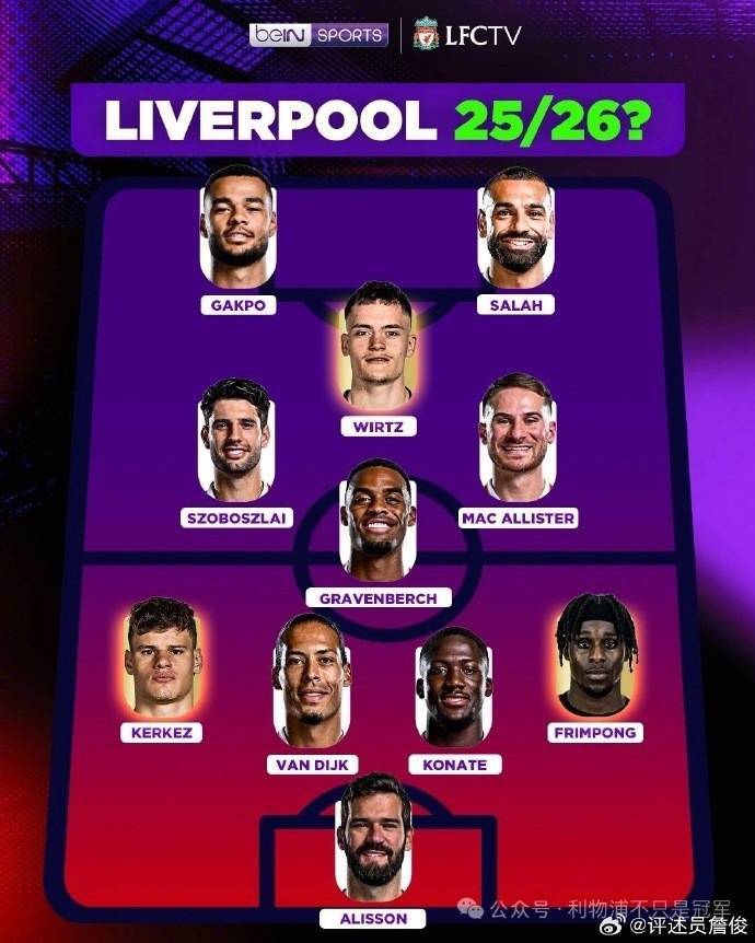 利物浦预测首发:阿利森;科尔克兹、范迪克、科纳特、弗林蓬;赫拉芬贝赫、索博斯洛伊、麦卡利斯特、维尔茨;加克波、萨拉赫